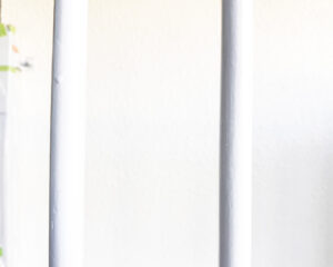 日中の屋外で撮影したので、少し分かりづらい写真ですが、フェンスの柵部分です。養生とケレン清掃、錆止めを塗ったあとの様子です。