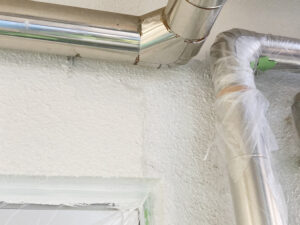 本日は配管がたくさん絡んでいる外壁の塗装工事を行いました。養生をするもの、しないもの、塗るもの、塗らないもの、間違いの起きぬよう丁寧迅速に工事をすすめていきました。