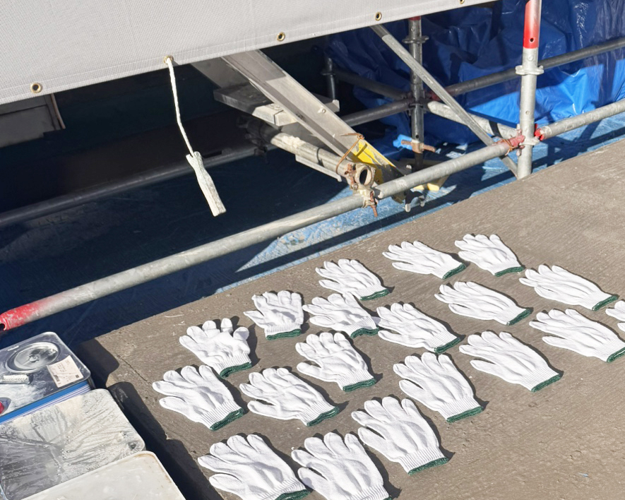 こんにちは、高橋塗装店です。 午前中の作業を終えました。本日は快晴だったため、先日の雨で湿らせてしまった軍手をネタ場近くで干しました。 午後は階段周りの外壁を塗っ... 続きを読む